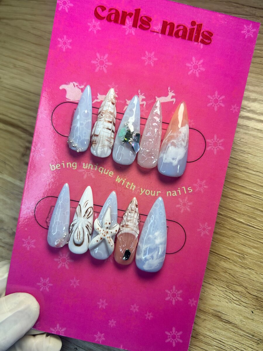 Découvrez nos press-ons de la gamme SUMMER SET Longueur L , forme stiletto à 7000 F.