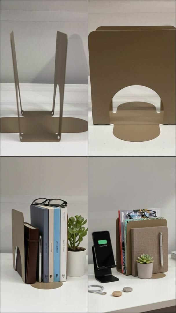 Organisez facilement vos livres et documents avec ce support en métal élégant. Idéal pour la maison ou le bureau, il maintient vos livres debout et apporte une touche moderne à votre espace. Compact et robuste, il est parfaitement adapté pour les étagères ou les bureaux, et sa finition épurée s'intègre à tout style de déco.