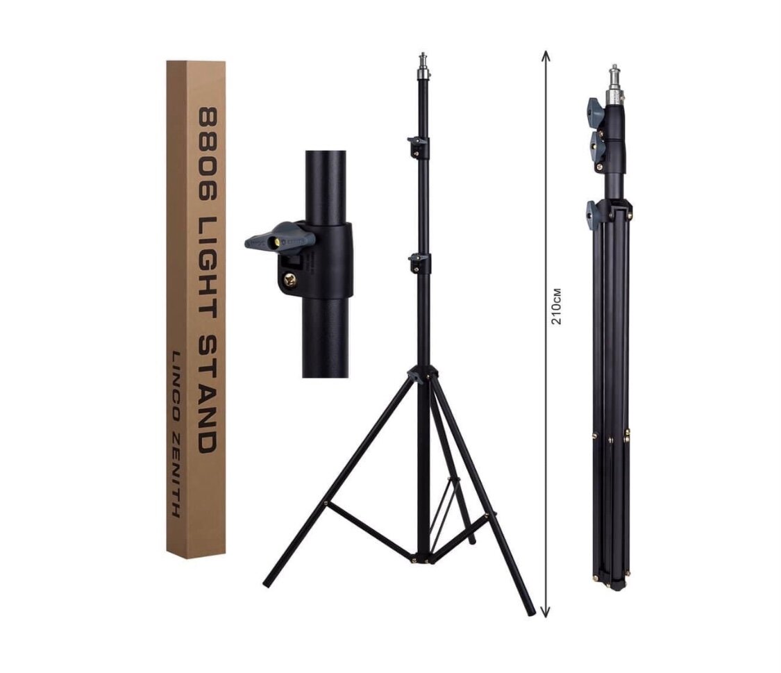 Support de lumière robuste et ajustable, idéal pour les professionnels de la photographie et de la vidéo. Hauteur réglable jusqu'à 210 cm. Léger et facile à transporter. Compatible avec divers équipements d'éclairage.