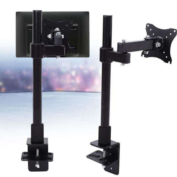 Support Écran PC,Bras Ecran PC pour Moniteurs de 17'' à 27'',Supporte Moniteur de 7 kg,Bras avec 360° Pivotant,Réglable en Hauteur Le support PC est équipé d'un ressort à gaz ultra-précis pour assurer un positionnement fiable et stable. Le bras écran PC et TV peut contenir n'importe quel moniteur ou téléviseur de 17 à 27pouces jusqu'à 7 kg. Le bras réglable offre une