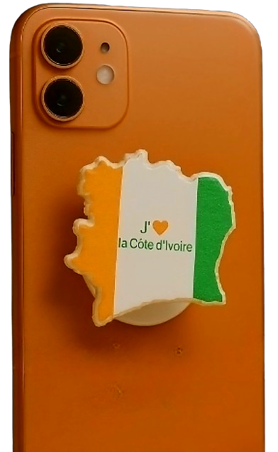 Support téléphone ergonomique à motif de la Côte d'Ivoire. Idéal pour sécuriser votre prise en main et afficher votre fierté. Parfait pour les voyageurs, les amateurs de gadgets et comme accessoire de mode unique.