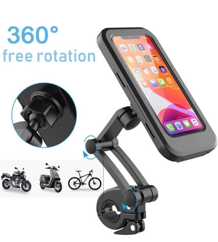 Support mobile vélo, rotation 360°, étanche, pour smartphones. Parfait pour les cyclistes et motards, il protège votre téléphone des intempéries tout en offrant une visibilité maximale. Ajustable et sûr, idéal pour les aventures en plein air.