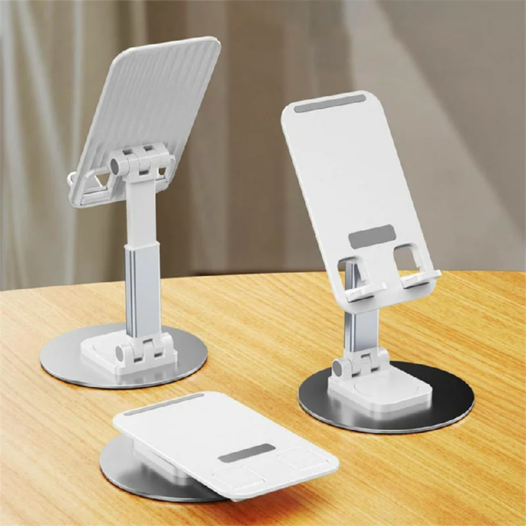 Support téléphonique pliable et réglable en hauteur pour bureau. Idéal pour visionnage confortable et appels vidéo. Compatible avec téléphones portables et tablettes. Base stable antidérapante.
