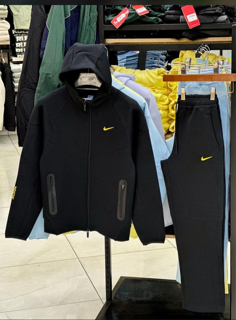Optez pour cet ensemble de sport Nike en noir. Confortable et stylé, il est idéal pour vos entraînements ou pour un look décontracté. Avec sa capuche pratique et ses poches zippées, il allie fonctionnalité et design moderne. Parfait pour les passionnés de sport et les amateurs de mode.
