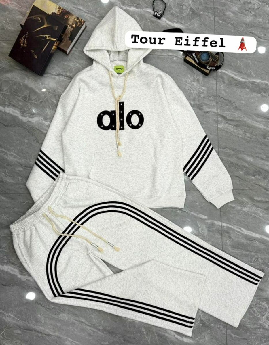 Confort et style avec ce survêtement Alo. Parfait pour le sport ou la détente, ce modèle est composé d'un hoodie et d'un pantalon assorti, idéal pour un look décontracté et tendance.