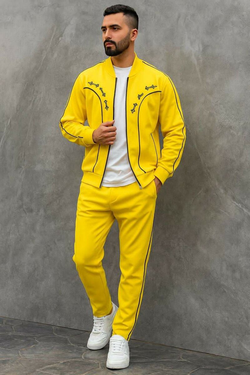 Optez pour le style moderne avec ce survêtement jaune vif, idéal pour la mode décontractée. Fabriqué avec des matériaux confortables et respirants, il est parfait pour le sport ou le quotidien.