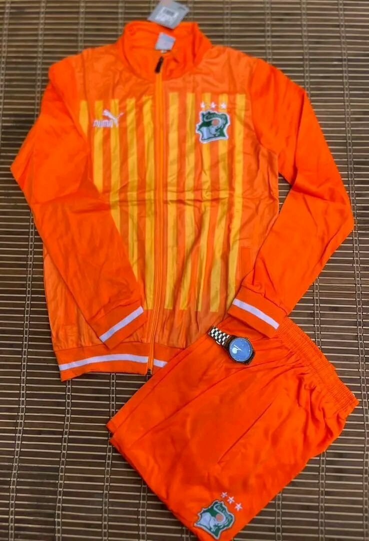 Entraînez-vous avec style avec ce survêtement inspiré de la Côte d'Ivoire. Parfait pour les amateurs de sport, il assure confort et performance. Idéal pour le jogging ou les matches!
