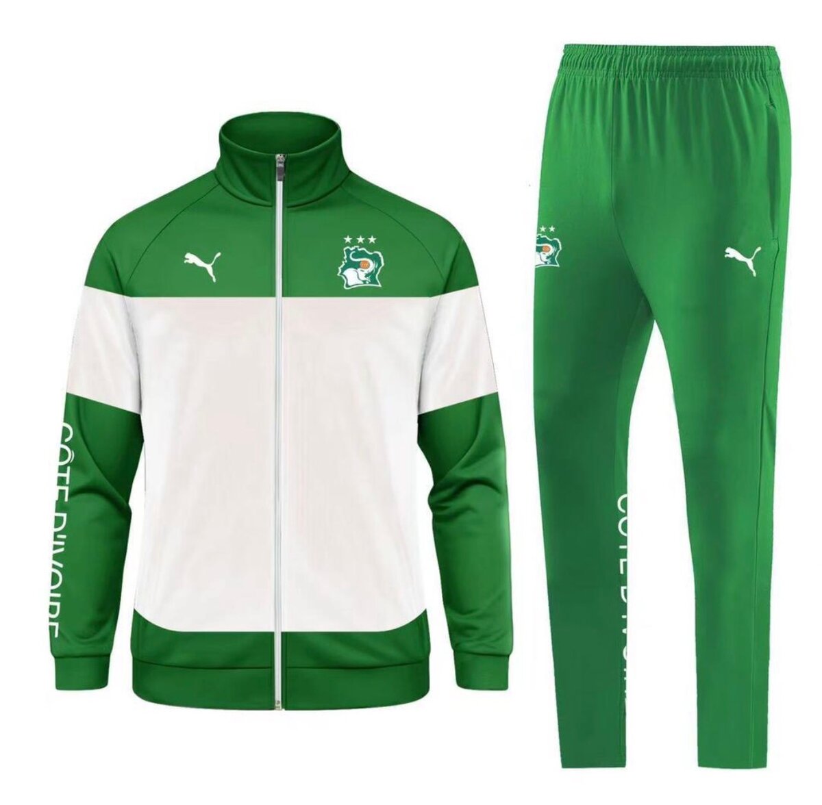 Ensemble de survêtement vert et blanc, idéal pour le sport et les loisirs. Confortable et stylé, ce survêtement est parfait pour rester actif tout en étant à la mode. Il est conçu avec des matériaux de qualité pour garantir durabilité et confort.