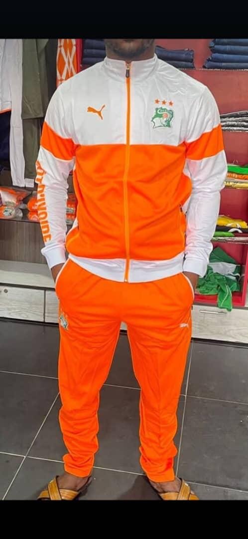 Découvrez le survêtement officiel de l'équipe Côte d'Ivoire, parfait pour les fans et les sportifs. Confortable et stylé, il est idéal pour l'entraînement ou les loisirs. Fabriqué en matériaux de qualité, il offre une grande liberté de mouvement tout en affichant vos couleurs avec fierté.