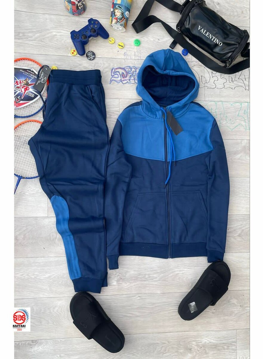 Ensemble de survêtement homme en bleu, idéal pour le sport ou les loisirs. Confortable et stylé avec une coupe moderne. Parfait pour les activités extérieures ou une tenue décontractée à la maison.