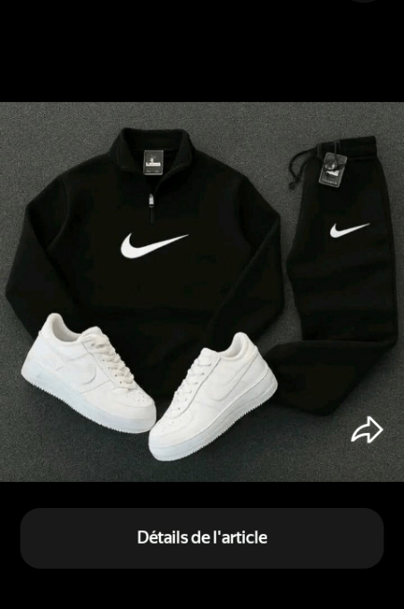 Découvrez cet ensemble de survêtement Nike pour homme, comprenant un sweat et un pantalon noirs élégants. Accompagné de baskets blanches classiques, il offre un confort exceptionnel et un style sportif et moderne. Idéal pour le sport ou les sorties décontractées. Faites ressortir votre style athlétique avec cet ensemble incontournable!