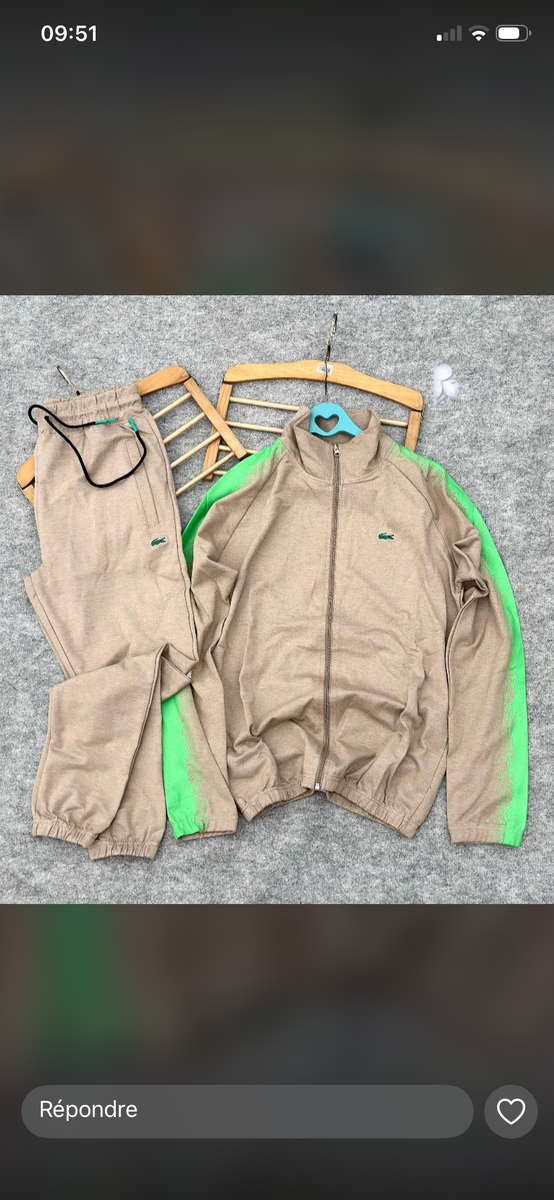 Découvrez ce survêtement unisexe alliant confort et style. Disponible en deux couleurs sobres avec un design moderne et des bandes vertes contrastantes. Parfait pour le sport ou les moments décontractés. Facile d'entretien avec une coupe ajustée qui s'adapte à toutes les tailles. Idéal pour un look tendance et confortable au quotidien !