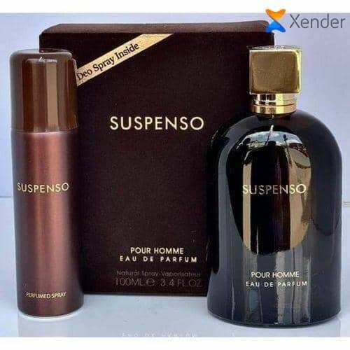Découvrez Suspenso Pour Homme, une Eau de Parfum raffinée avec un spray déodorant. Idéale pour l'homme moderne recherchant élégance et fraîcheur au quotidien. Un cadeau parfait pour toutes les occasions.