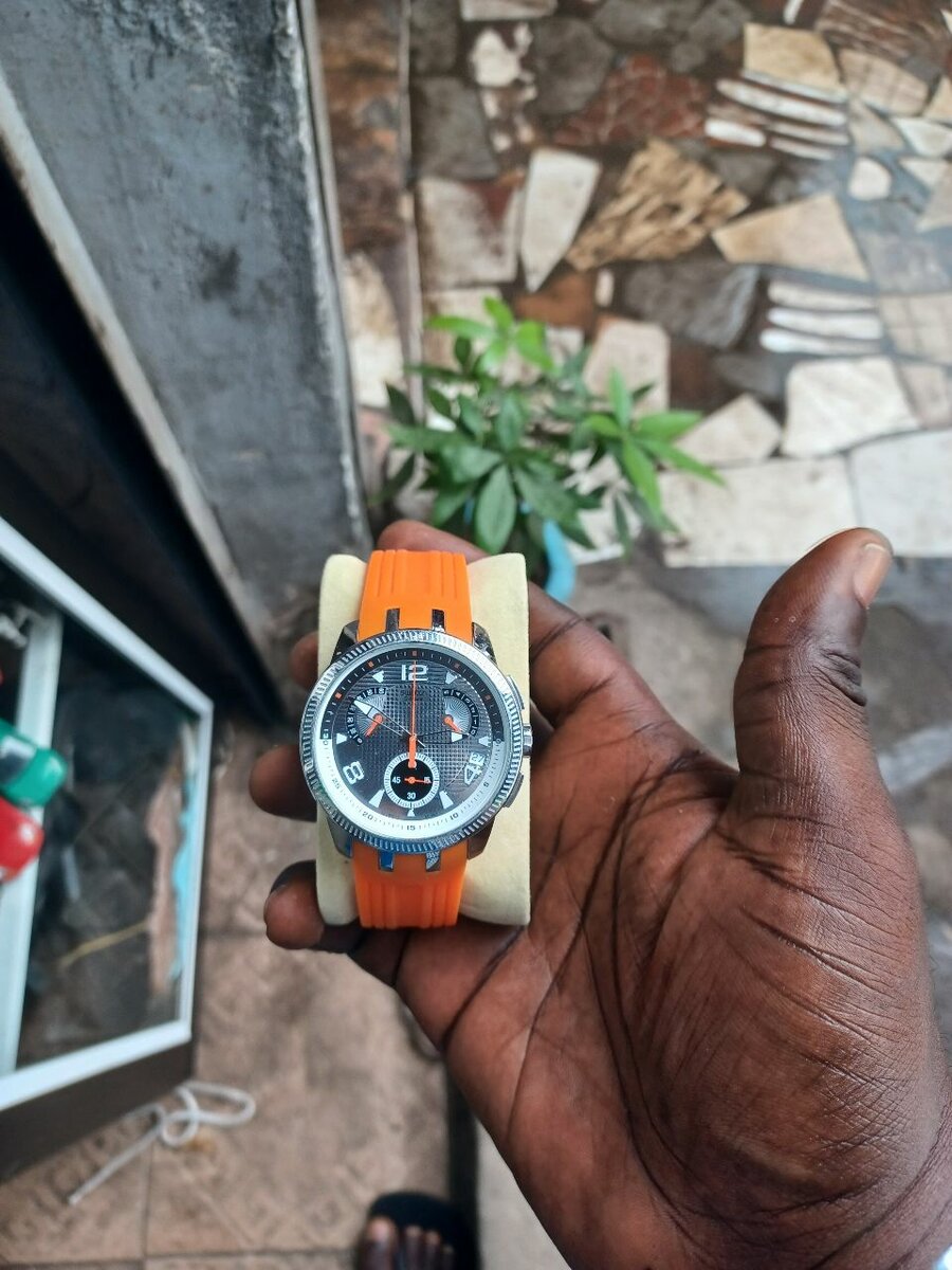 Découvrez cette montre sportive au bracelet orange vif, idéale pour les amateurs de style dynamique. Son design robuste avec un cadran intuitif, parfait pour vos aventures ou votre quotidien. Étanche et résistante, elle est l'accessoire tendance pour affirmer votre look.