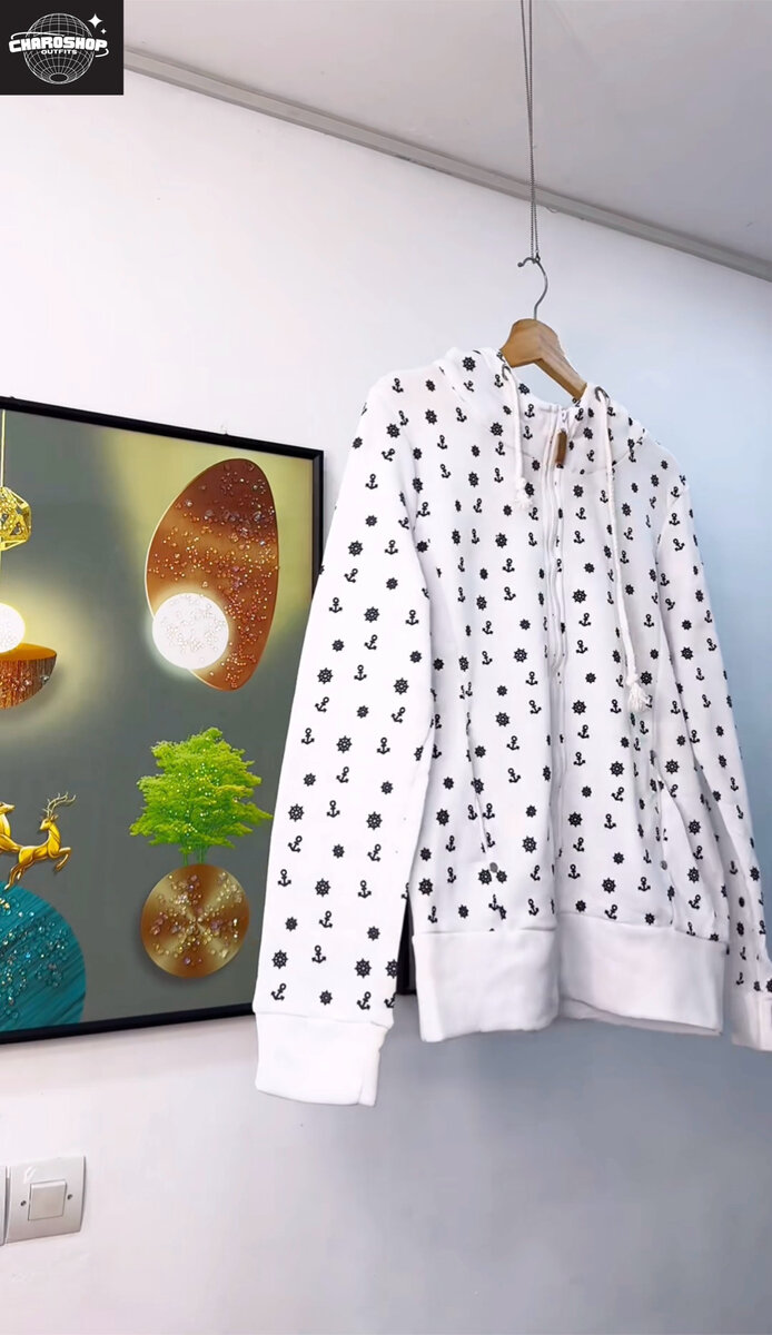 Découvrez ce confortable sweat à capuche blanc avec un motif d'ancre noir. Parfait pour un look décontracté, il est idéal pour les sorties en ville ou les moments détente à la maison. Fabriqué en coton doux, il assure chaleur et style.