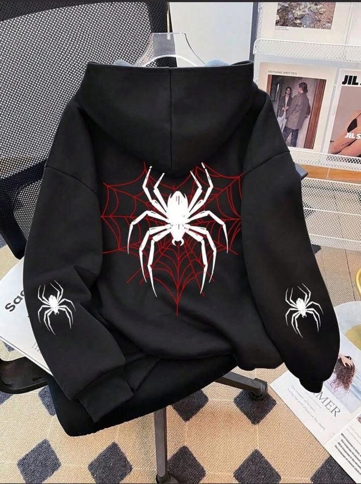Découvrez notre sweat à capuche noir avec motif d'araignée audacieux. Idéal pour un look décontracté et tendance, parfait pour les sorties ou les moments de détente.