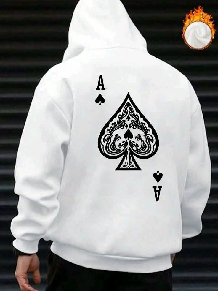 Un sweat à capuche blanc confortable et tendance, orné d'un grand motif As de Pique au dos. Idéal pour les amateurs de mode streetwear et jeux de cartes.
