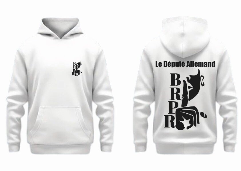 Découvrez ce sweat à capuche blanc, alliant confort et style avec un design audacieux 'Le Député Allemand'. Idéal pour un look décontracté mais tendance, ce vêtement apporte une touche unique à votre garde-robe. Parfait pour les journées fraîches, ce sweat est un incontournable pour tous les amateurs de mode urbaine. Faites sensation et affirmez votre style.