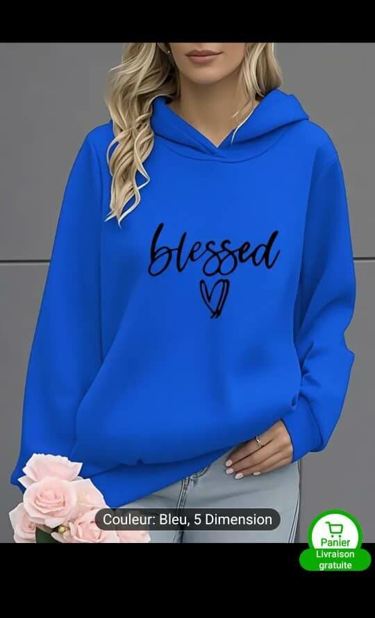 Découvrez notre sweat à capuche bleu "Blessed", parfait pour un look décontracté et stylé. Fabriqué en coton doux, il est idéal pour le quotidien. Apportez un message positif à votre garde-robe!