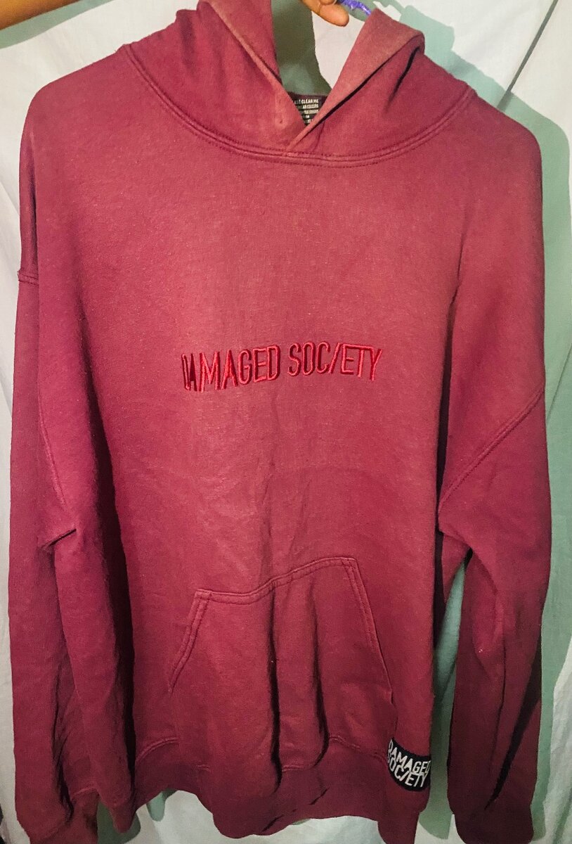 Découvrez notre sweat à capuche confortable et stylé, idéal pour un look décontracté. Fabriqué en coton doux, il est parfait pour toutes les saisons. Sa couleur bordeaux apporte une touche d'élégance et le slogan "DAMAGED SOCIETY" ajoute un caractère unique. Le choix parfait pour ceux qui cherchent le confort sans sacrifier le style.