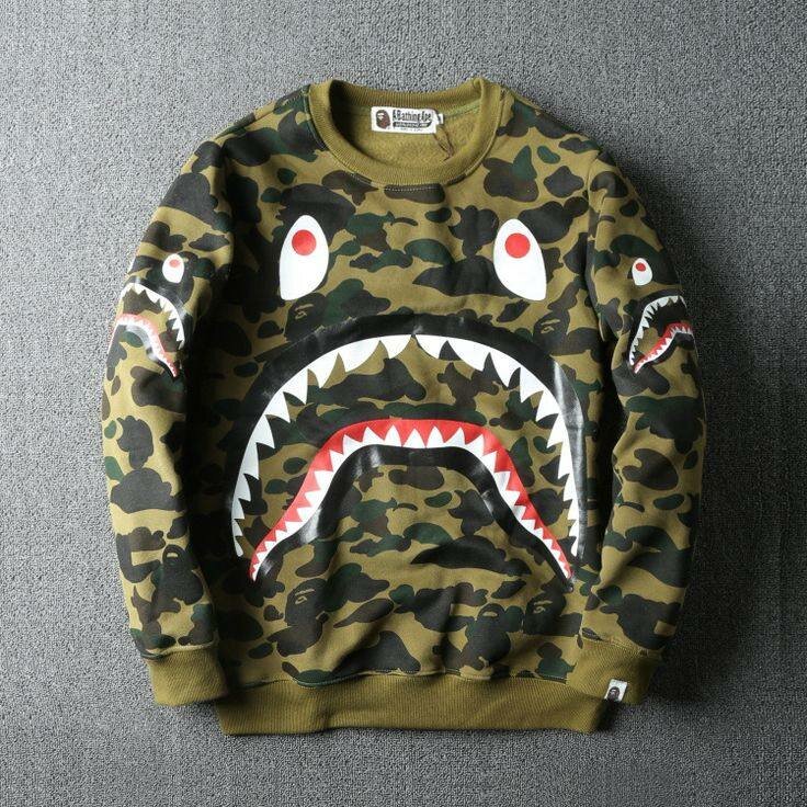 Sweat à capuche camouflage vert avec motif requin, parfait pour un style streetwear unique