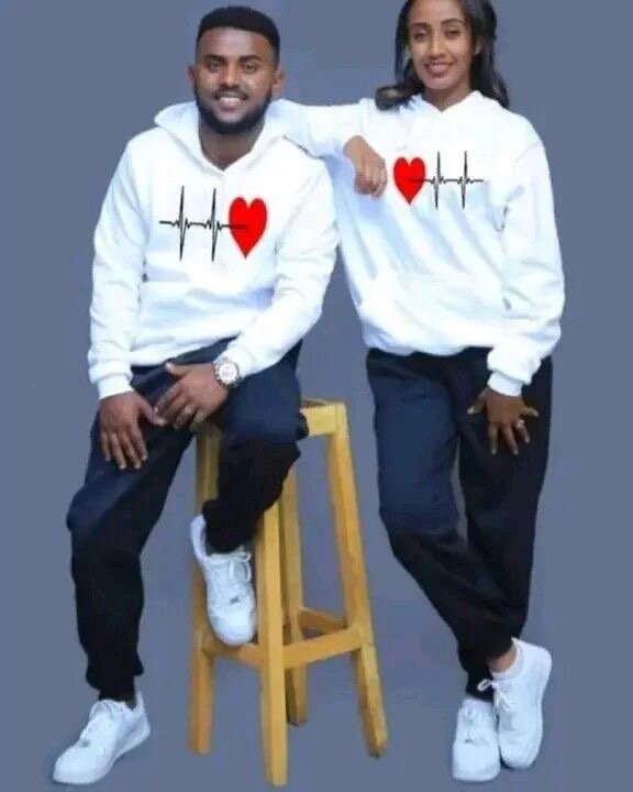 Sweat à capuche pour couple avec design cœur et ECG. Conçu pour les couples amoureux. Confortable et élégant, il est idéal pour les sorties en couple ou les moments de détente à la maison.