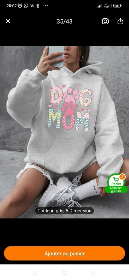 Idéal pour les amoureux des chiens, ce sweat à capuche gris "Dog Mom" est à la fois confortable et stylé. Fabriqué en coton doux, il assure chaleur et élégance lors des journées fraîches. Un incontournable pour une tenue décontractée au quotidien.
