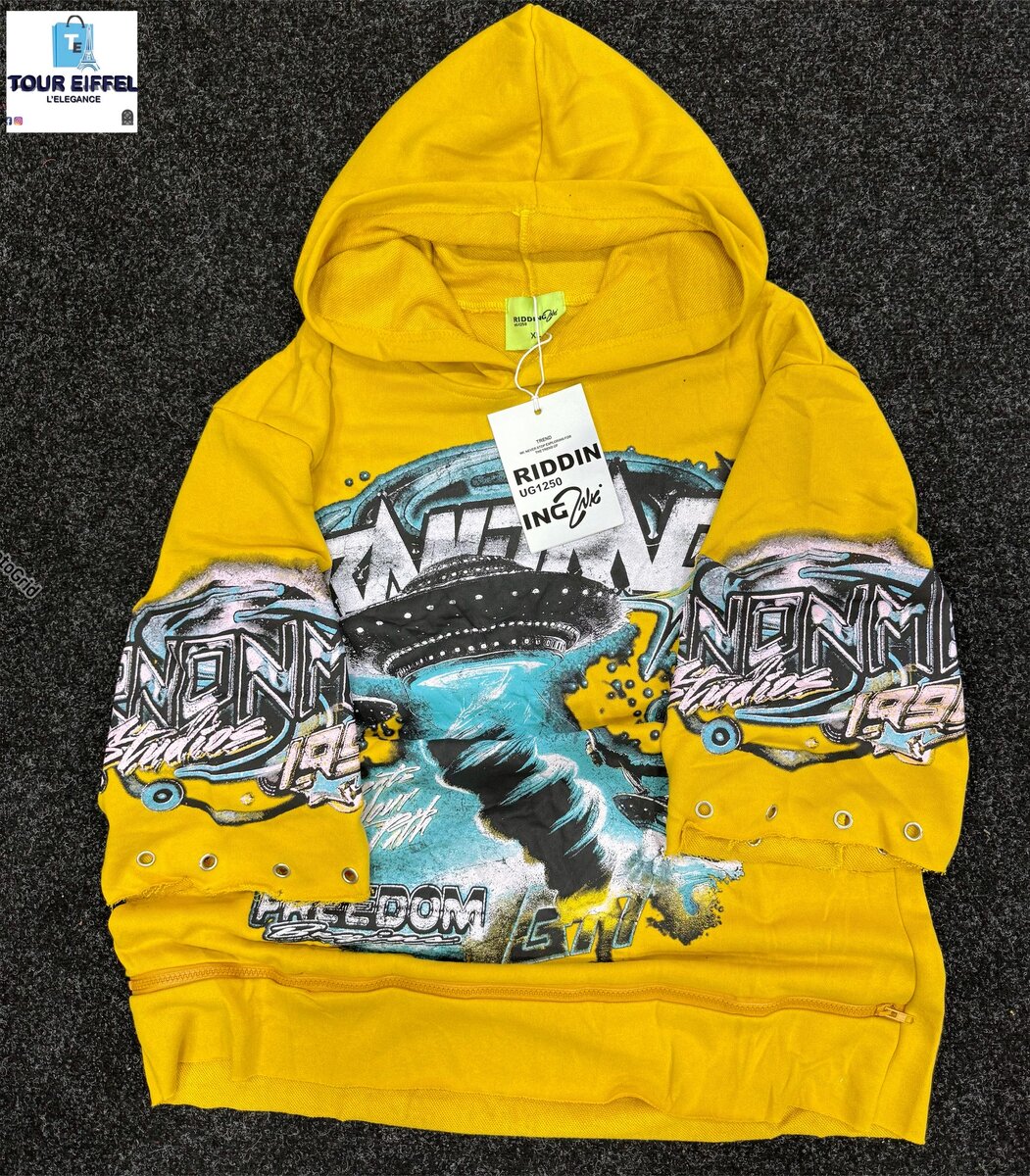 Ce sweat à capuche enfant tendance en jaune vif est parfait pour ajouter une touche de couleur au quotidien. Confortable et douillet, il est idéal pour l'école ou le week-end. Avec son design graphique accrocheur, il fera sensation parmi les amis. Fabriqué pour durer avec des matériaux de qualité, c'est un choix idéal pour les parents à la recherche de style et de durabilité.