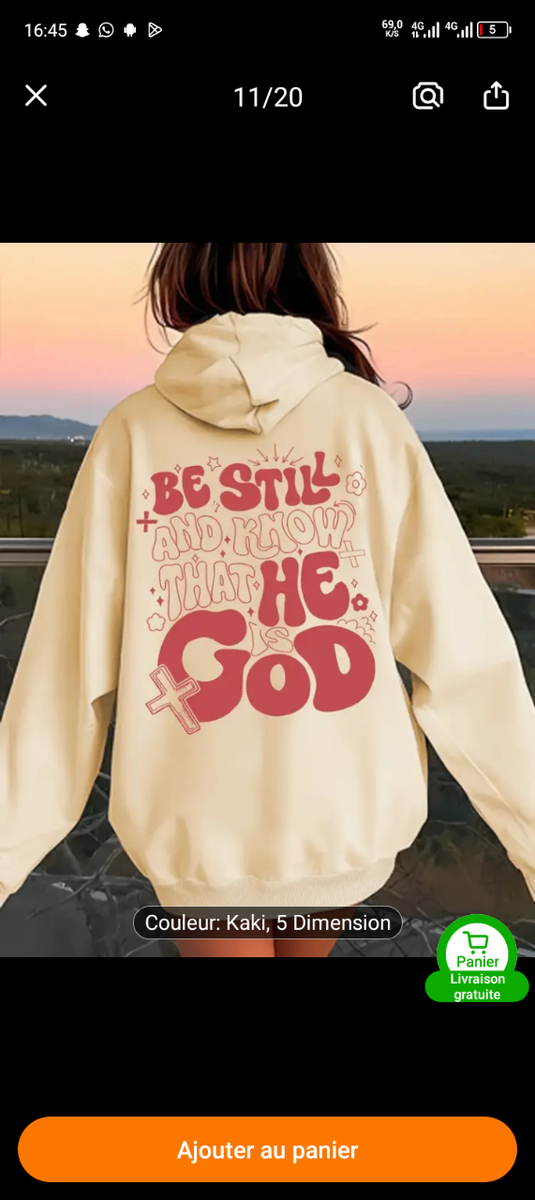 Adoptez un style décontracté avec notre sweat à capuche kaki, orné d'un imprimé inspirant. Parfait pour les moments de détente, ce sweat doux et confortable est un ajout polyvalent à votre garde-robe. Idéal pour les soirées fraîches ou les promenades en ville.