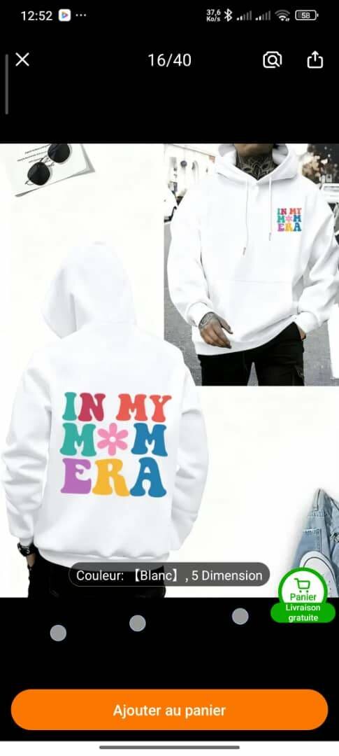 Découvrez ce sweat à capuche blanc avec le slogan 'IN MY MOM ERA' pour les mamans branchées. Confortable et tendance, il est idéal pour un usage quotidien.