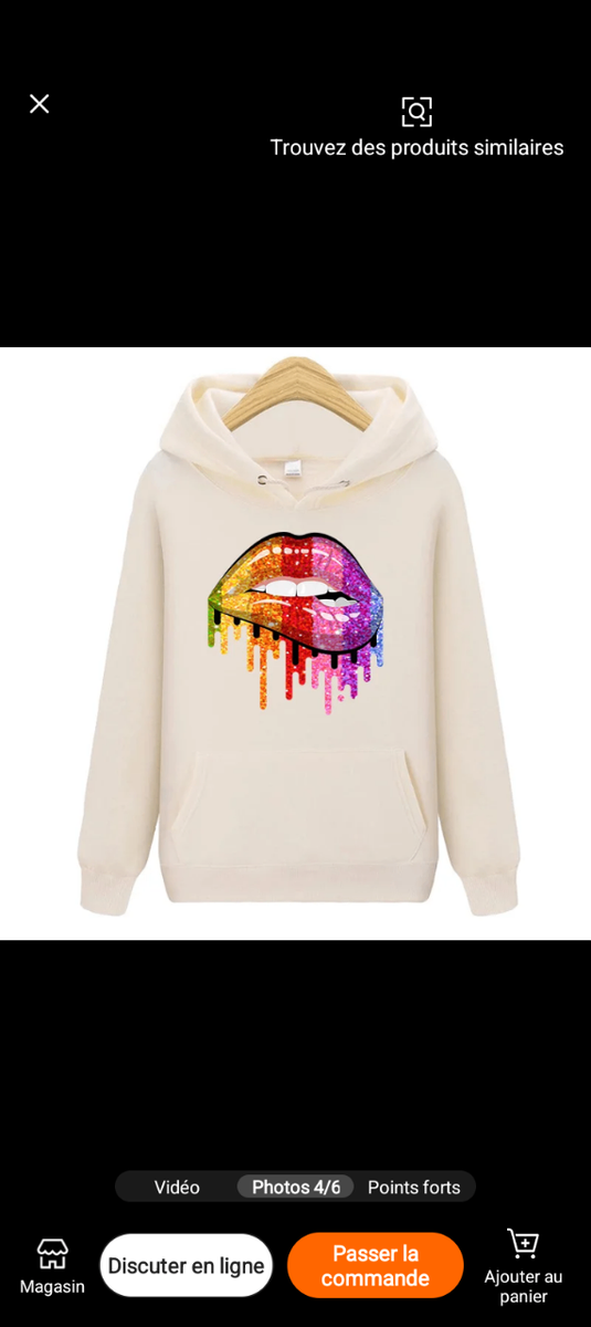 Exprimez votre style unique avec ce sweat à capuche orné d'un motif de lèvres colorées et captivantes. Ce vêtement confortable et à la mode est parfait pour les sorties décontractées ou pour ajouter une touche artistique à votre garde-robe.