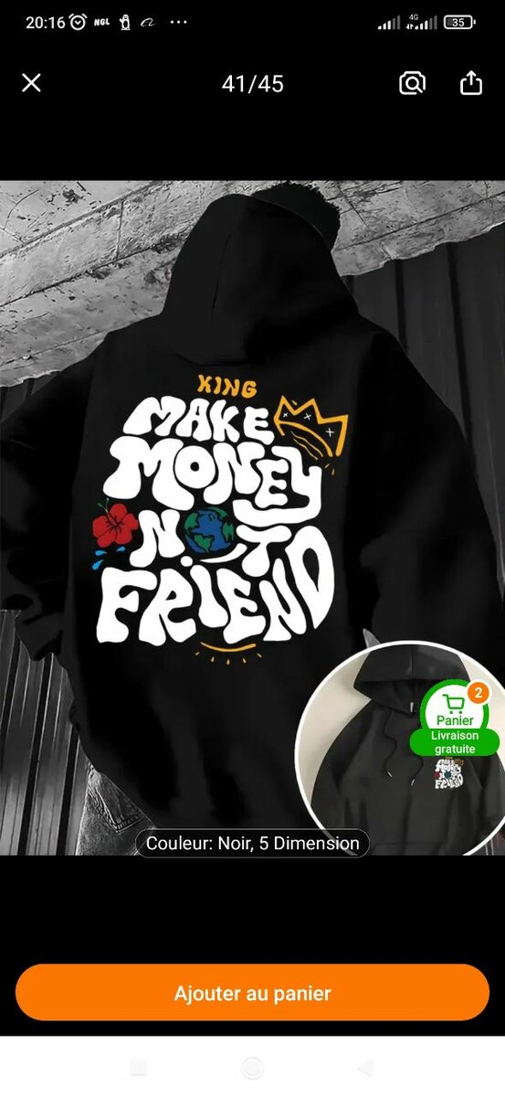 Sweat à capuche tendance 'Make Money No Friend' pour un look streetwear audacieux. Fabriqué en coton doux, parfait pour le quotidien.