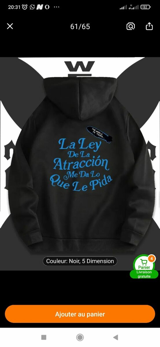 Découvrez notre élégant sweat à capuche noir avec l'inscription "La Ley De La Atracción". Parfait pour un style décontracté tout en véhiculant un message puissant. Fabriqué en coton doux, ce sweat est idéal pour les journées fraîches et confortables. Un incontournable pour votre garde-robe quotidienne.