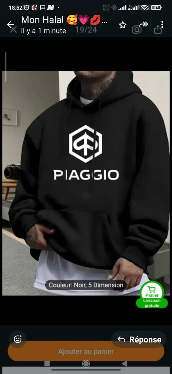 Ce sweat à capuche noir Piaggio est parfait pour les fans de la marque. Confortable et élégant, il est idéal pour un look décontracté. Fabriqué à partir de matériaux de qualité, il offre chaleur et style pour les saisons fraîches.