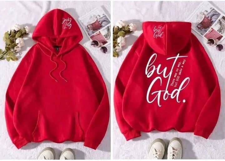 Découvrez ce sweat à capuche rouge confortable avec une inscription 'but God' au dos. Idéal pour les femmes qui cherchent un vêtement décontracté et stylé. Conçu pour un usage quotidien, ce sweat offre un excellent confort.