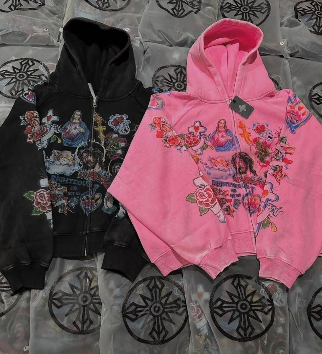 Sweat à capuche zippe avec imprimé graphique, confortable et tendance. Disponible en noir et rose. Parfait pour un look décontracté.