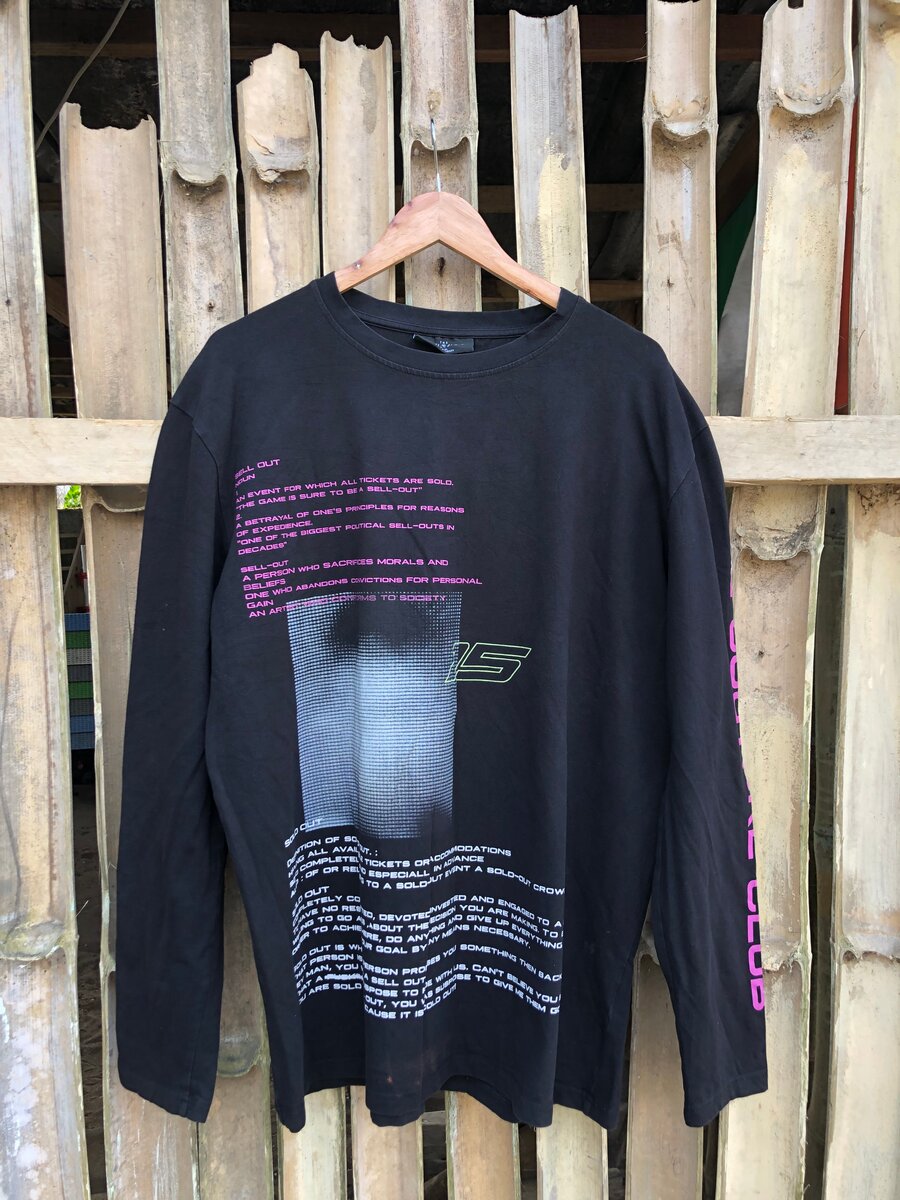 Sweat à manches longues noir avec inscriptions violettes et graphiques sur le devant et les manches. Conçu pour un confort optimal et un style urbain.