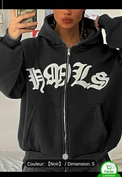 Sweat noir à capuche avec ailes brillantes au dos. Look original, idéal pour briller en soirée ou en journée. Matière douce, neuf.