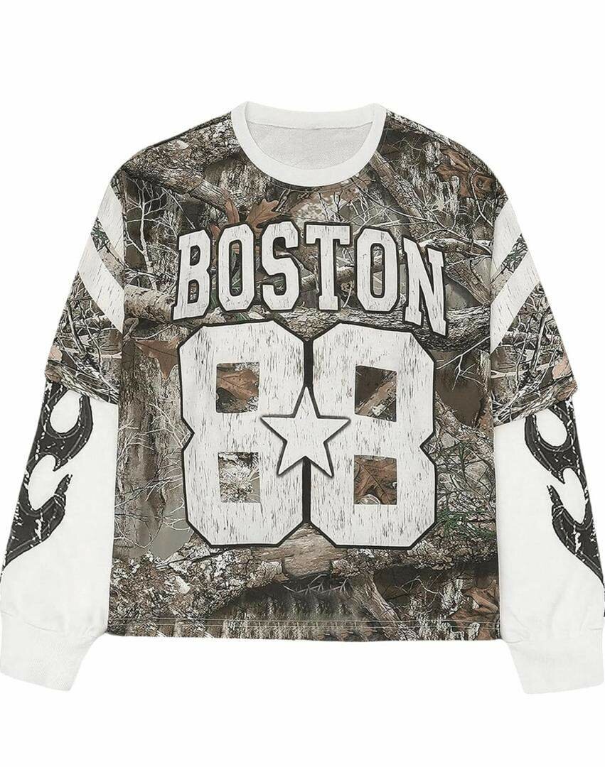 Découvrez le sweat-shirt "Boston 88" à manches longues, parfait pour un style urbain et décontracté. Conçu en tissu résistant avec un motif camouflage unique, il est idéal pour les amateurs de mode audacieuse. Profitez d'un look moderne et confortable pour toutes occasions.
