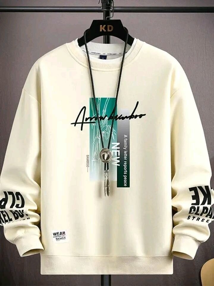 Sweat-shirt pour homme, couleur blanche. Conception moderne avec des éléments imprimés. Idéal pour un look streetwear décontracté.