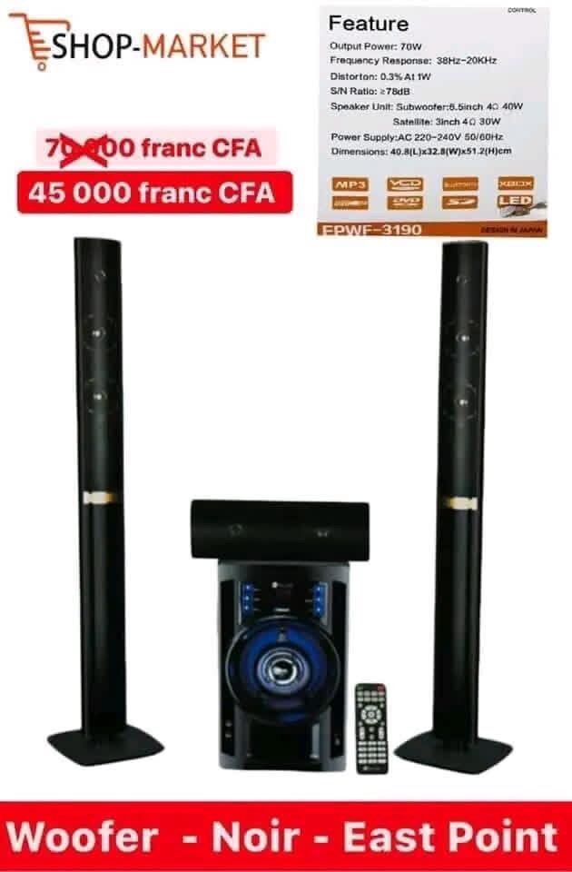 Découvrez le système audio Woofer East Point Noir, idéal pour une expérience sonore immersive. Avec sa puissance et sa télécommande, il est parfait pour votre salon ou salle de cinéma à domicile.