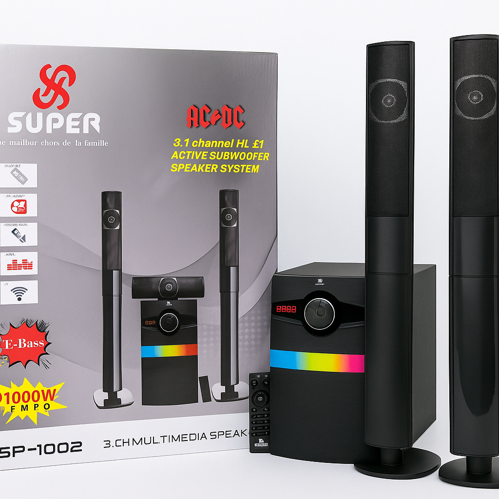 Découvrez une expérience sonore immersive avec ce système de haut-parleurs 3.1 avec subwoofer actif. Parfait pour les amateurs de musique et de films, ce système offre une puissance impressionnante de 1000W pour remplir n'importe quelle pièce de son. Équipé de la technologie Bluetooth et d'une télécommande, il est facile à connecter et à contrôler. Idéal pour votre salon, c'est un ajout exceptionnel à tout système de divertissement domestique. Design élégant et moderne, il s'harmonise avec chaque intérieur.