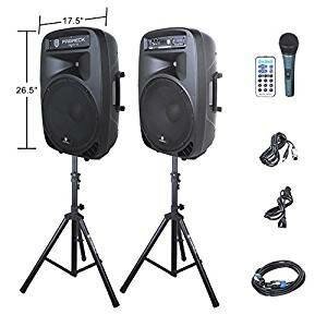 Profitez d'un son puissant avec ce système de sonorisation complet. Idéal pour événements, fêtes ou présentations, il inclut des haut-parleurs sur trépieds, un microphone sans fil et une télécommande. Facile à installer et utiliser, il offre une connectivité polyvalente pour tous vos besoins audio.