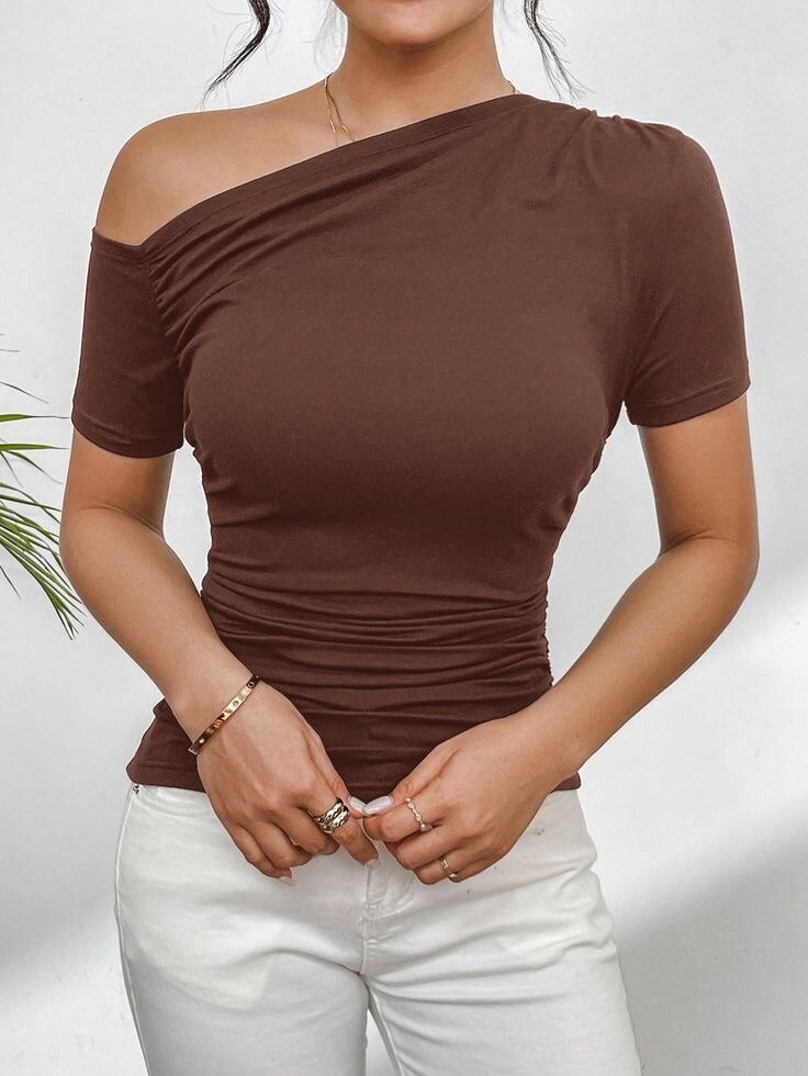 Découvrez ce t-shirt asymétrique marron, idéal pour un style élégant et moderne. Avec sa coupe ajustée et son design unique, il mettra en valeur votre silhouette tout en vous offrant un confort optimal. Parfait pour une sortie décontractée ou une occasion spéciale. Fabriqué à partir de matériaux de qualité qui garantissent durabilité et élégance.