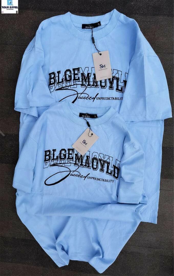 T-shirt en coton bleu avec imprimé moderne, idéal pour un look décontracté. Confortable et élégant, parfait pour toutes les occasions décontractées. Disponible en plusieurs tailles.