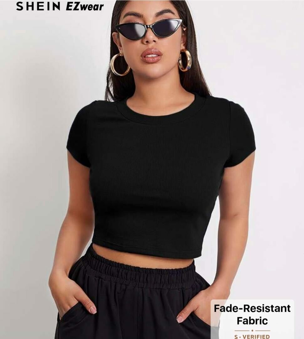 Ce T-shirt court basique est un incontournable de votre garde-robe. Disponible en plusieurs couleurs, il offre un ajustement parfait grâce à son tissu extensible et résistant à la décoloration. Idéal pour un look décontracté et stylé, que ce soit pour sortir en ville ou pour une journée tranquille à la maison.