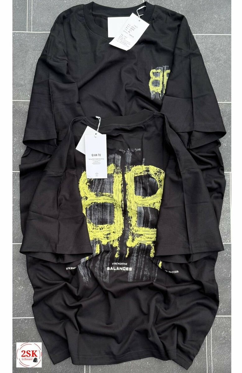 Optez pour ce t-shirt noir audacieux avec un motif graphique moderne en jaune. Fabriqué en coton doux, ce t-shirt offre non seulement style mais aussi confort tout au long de la journée. Idéal pour un look décontracté ou pour ajouter une touche d'originalité à votre tenue. Parfait pour les amateurs de mode à la recherche d'une pièce unique et tendance.