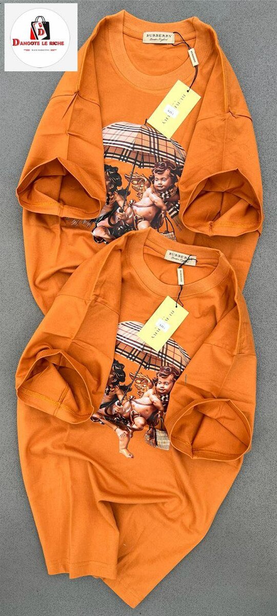 T-shirt orange avec design artistique, parfait pour un look moderne et élégant. Confortable et idéal pour toutes les occasions décontractées.