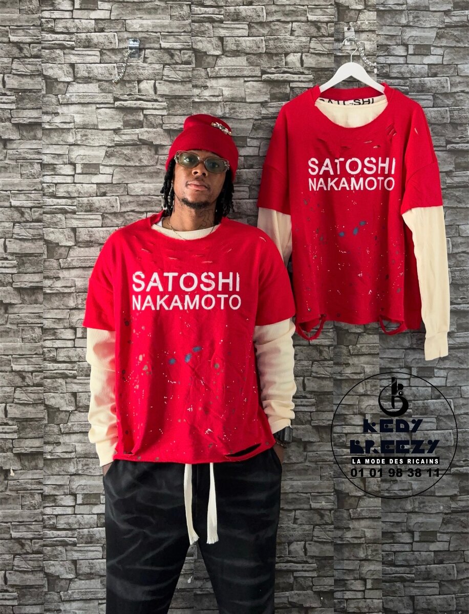 Découvrez notre T-shirt Satoshi Nakamoto - un mélange unique de style urbain et modernité. Ce t-shirt rouge audacieux avec manches longues beiges est parfait pour ceux qui veulent se démarquer. Fabriqué en coton de qualité, il offre confort et durabilité. Portez-le lors de vos sorties en ville pour un look branché et décontracté.