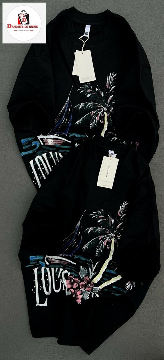 Découvrez ce t-shirt noir à imprimé tropical pour hommes. Fabriqué en coton de haute qualité, il offre confort et style décontracté. Parfait pour une journée au bord de la mer ou une sortie en ville. Un choix idéal pour ajouter une touche d'exotisme à votre garde-robe!